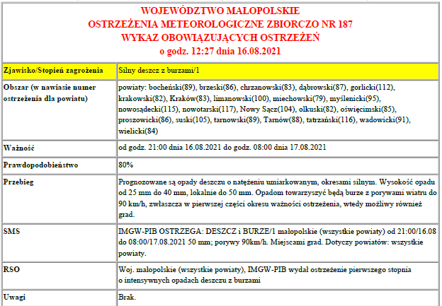 Prognozowane są opady deszczu o natężeniu umiarkowanym, okresowo silnym.