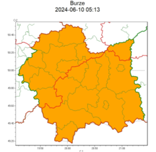 SMS IMGW-PIB OSTRZEGA: BURZE/2 małopolskie (wszystkie powiaty) od 10:00/10.06 do
