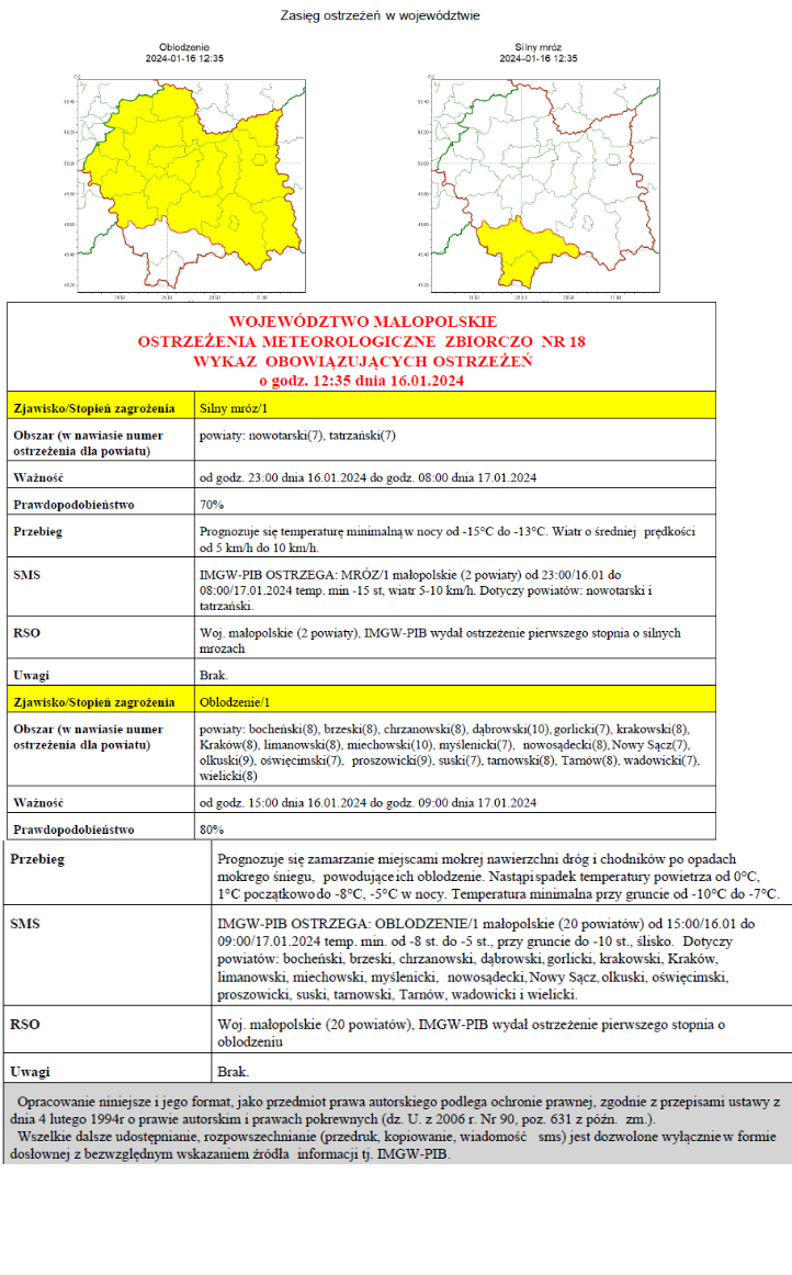 POWIATOWE CENTRUM ZARZĄDZANIA KRYZYSOWEGO W OŚWIĘCIMIU OŚWIĘCIM dn. 16 stycznia 2024r