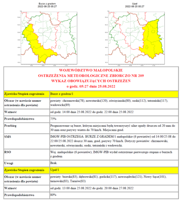 W związku z powyższym proszę podjąć stosowne działania zapobiegawcze i ostrzegawcze związane z ostrzeżeniem ludności oraz przygotować odpowiednie służby.