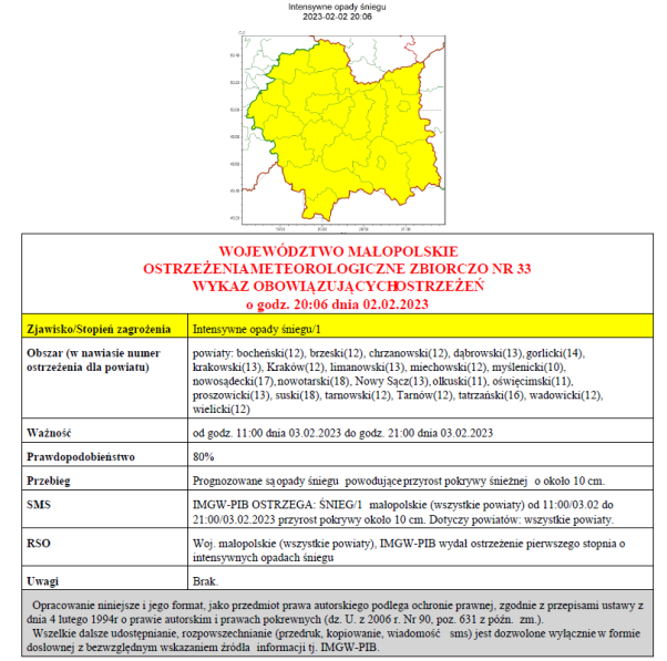 W związku z powyższym proszę podjąć stosowne działania zapobiegawcze i ostrzegawcze związane z ostrzeżeniem ludności oraz przygotować odpowiednie służby.