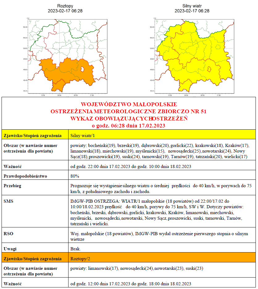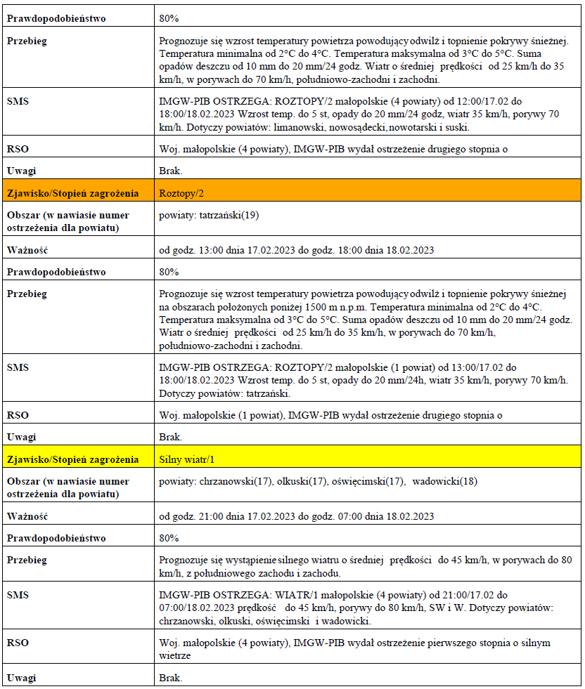W związku z powyższym proszę podjąć stosowne działania zapobiegawcze i ostrzegawcze związane z ostrzeżeniem ludności oraz przygotować odpowiednie służby.