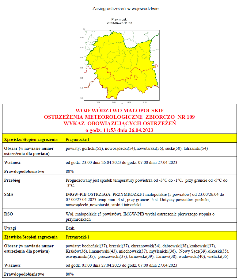 W związku z powyższym proszę podjąć stosowne działania zapobiegawcze i ostrzegawcze związane z ostrzeżeniem ludności oraz przygotować odpowiednie służby.