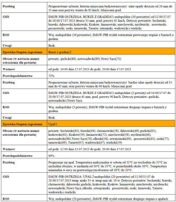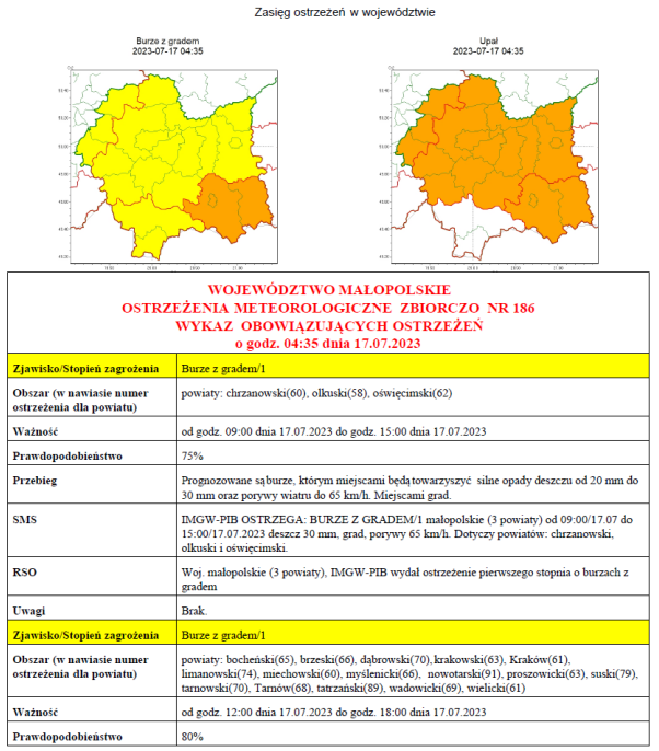 oraz ewentualnych szkodach, proszę informować Powiatowe Centrum Zarządzania Kryzysowego w Oświęcimiu