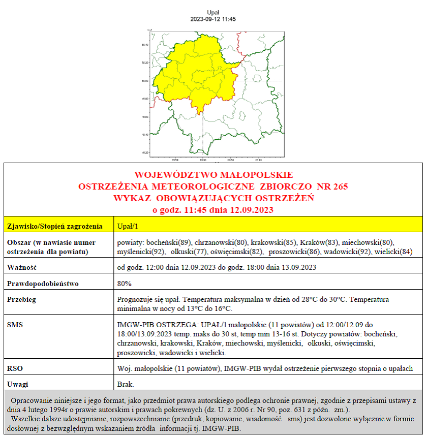 Ostrzeżenie meteorologiczne_265_Upał I stopnia 2023-09-12