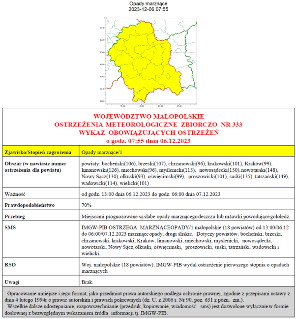 Miejscami prognozowane są słabe opady marznącego deszczu...