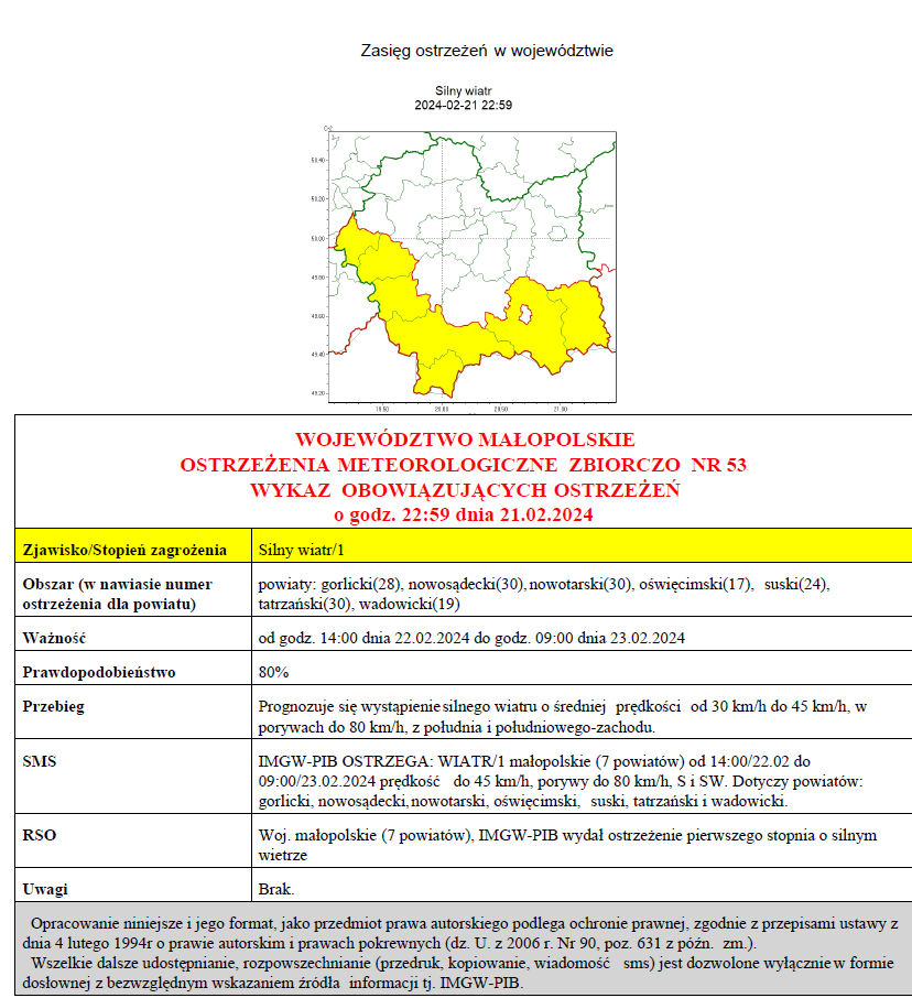 Ostrzeżenie meteorologiczne_nr53_Silny_Wiatr_1stopnia 2024-02-22