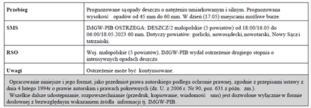 W związku z powyższym proszę podjąć stosowne działania zapobiegawcze i ostrzegawcze związane