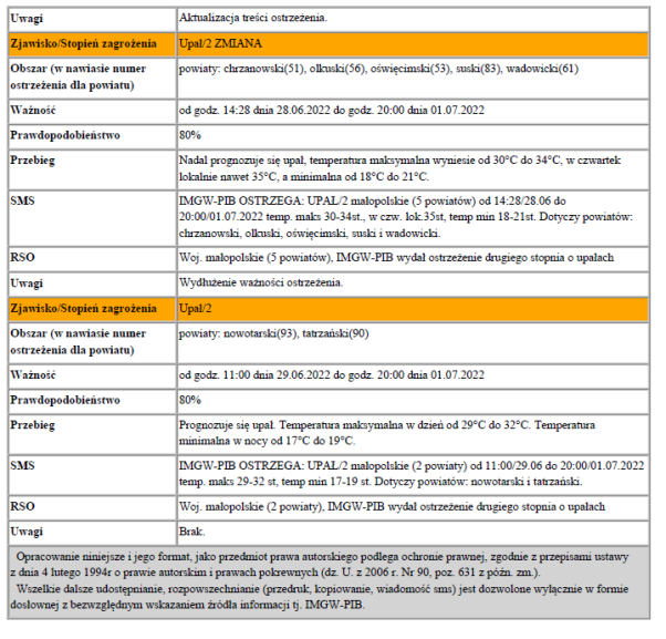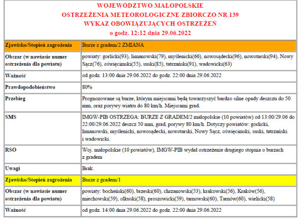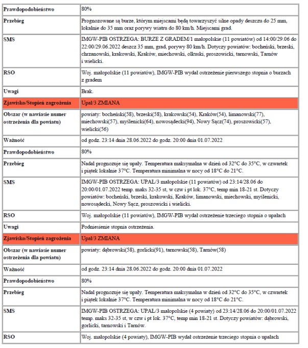 W związku z powyższym proszę podjąć stosowne działania zapobiegawcze i ostrzegawcze związane z ostrzeżeniem ludności oraz przygotować odpowiednie służby.