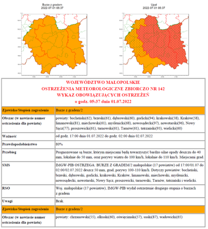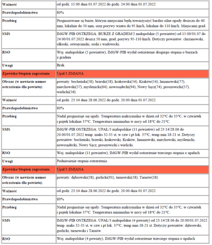 W związku z powyższym proszę podjąć stosowne działania zapobiegawcze i ostrzegawcze związane z ostrzeżeniem ludności oraz przygotować odpowiednie służby.