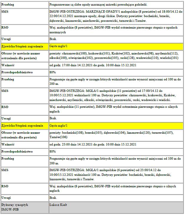 UWAGA !!!! Ostrzeżenie meteorologiczne - Gęsta mgła/1 2021-12-15